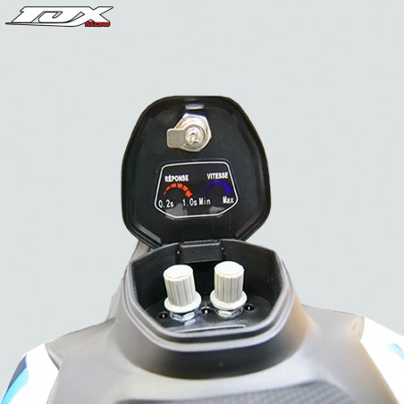Elle dispose d'un système de bridage de vitesse par potentiomètre, ainsi que pour la dynamique.